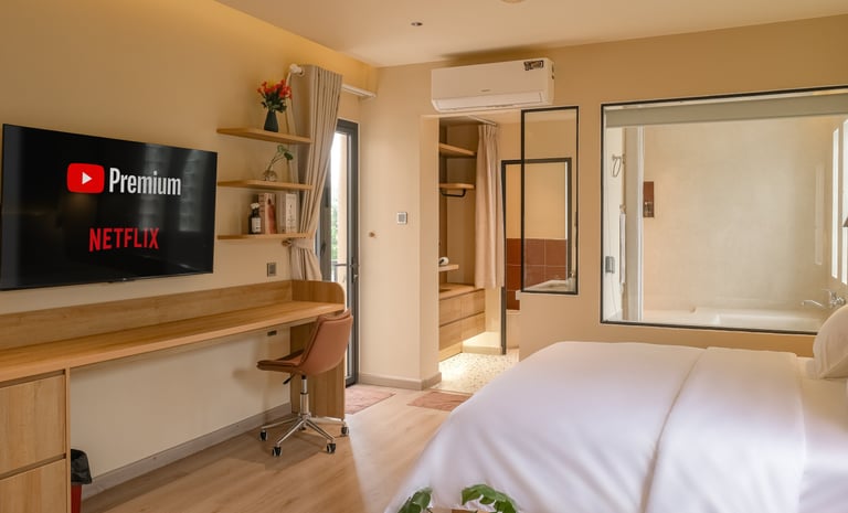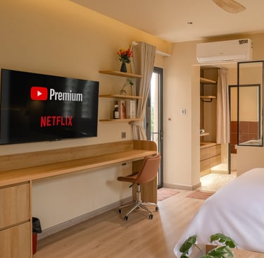 Each room at Palmera is more than a resting place — it’s where true relaxation happens. With Netflix Premium & YouTube Premium ready to use, you can easily indulge in favorite movies or shows.
