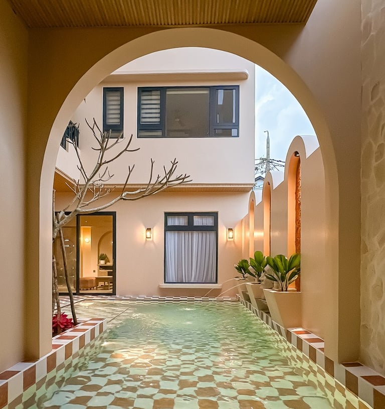 In the scorching Central Vietnam summer, guests can dip into the refreshing water, relax on soft sofas, and enjoy the harmony of air, water, colors, and light.