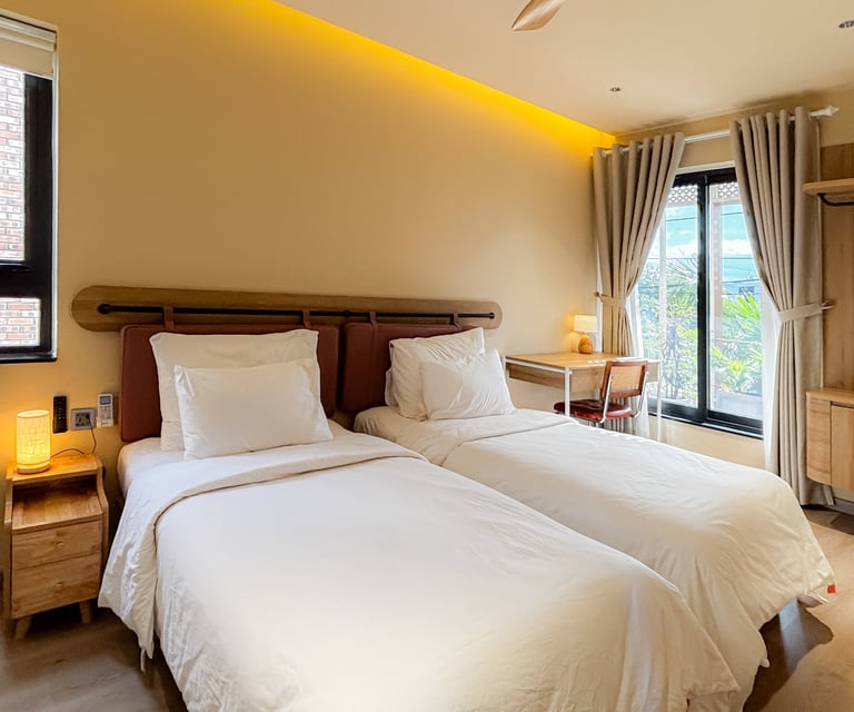 Palmera Hội An offers a warm and inviting stay with modern amenities, ensuring a comfortable experience. Enjoy the spacious rooms, where natural light flows in, and indulge in the luxury of a private pool with stunning views.