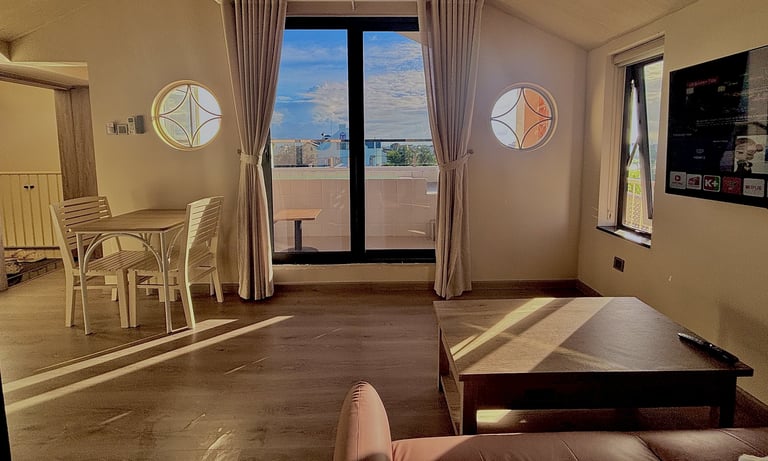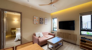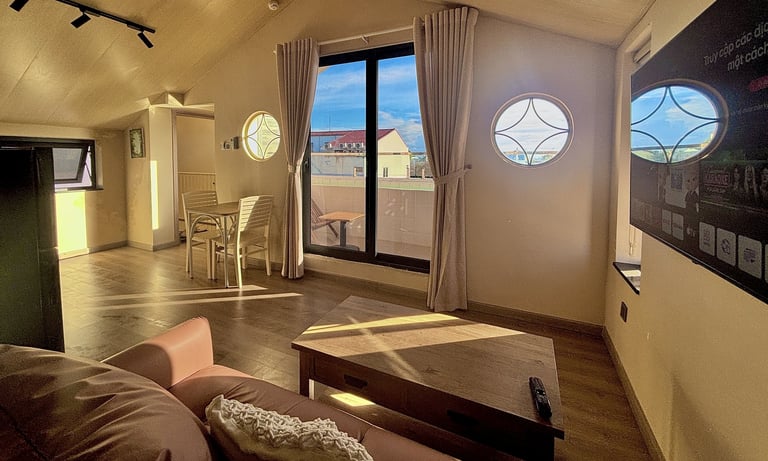 Căn hộ 2 phòng ngủ cực kì rộng rãi 79m2 với phòng khách và căn bếp tiện nghi. Mỗi căn phòng đều có balcony riêng, cửa sổ lớn và giường êm ái. Căn hộ 2 phòng ngủ được trang bị tivi 55inch siêu lớn, sofa rộng cùng bàn ăn dài cho trải nghiệm trọn vẹn trong kì nghỉ của bạn