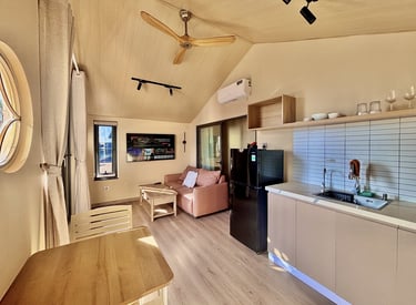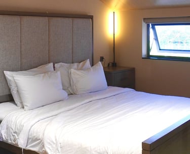 Phòng ngủ tách biệt hoàn toàn với khu vực bếp và phòng khách. Điểm nổi bật với tầm nhìn bao quát Hội An và bờ hồ Trảng Kèo.