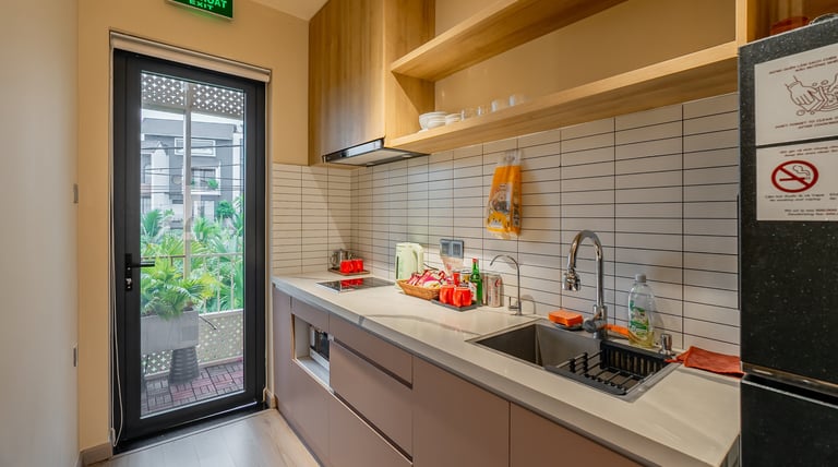 Căn hộ Studio đầy đủ tiện nghi bếp, cửa sổ rộng, balcony thoáng cùng cửa sổ thoáng đãng,
