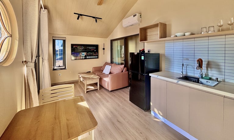 Phòng khách rộng lớn, kèm với căn bếp đầy đủ tiện nghi