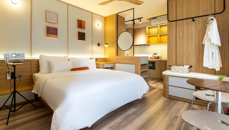 Căn hộ Studio đầy đủ tiện nghi bếp, Tầm nhìn ra hồ bơi cực chill, sáng cafe, tối lãng mạng, rất phù hợp cho các couple.
